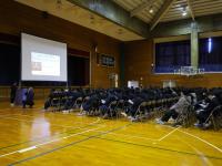 全校生徒が参加し、どの生徒も真剣な表情で話を聞きながら熱心にメモを取っていました。