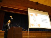 今年は各学年から選ばれた計17名の生徒が出場し、体育館のステージで英語のスピーチやプレゼンテーションを披露しました。