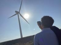 風車の高さを計算によって求めるために必要な仰角(地面から風車を見上げたときの角度)を測定するため、柳川海岸まで足を運びました。海に近い波崎柳川高校ならではの授業であり、本校の特権です!
