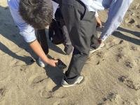 生徒たちは海や浜辺、漂流物からインスピレーションを受け短歌の作成に励んでいました。
